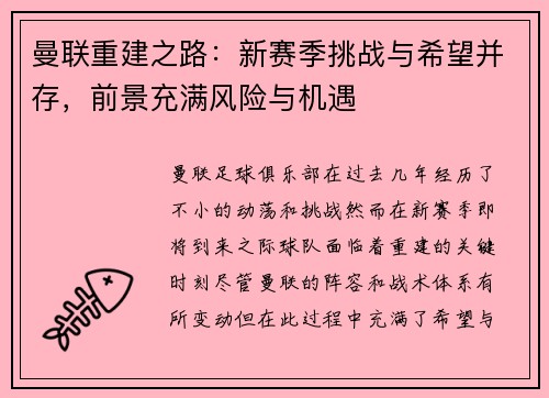 曼联重建之路:新赛季挑战与希望并存,前景充满风险与机遇